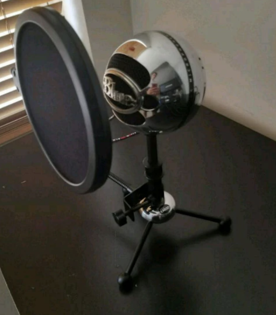 I bought a solid middle of the road microphone, The Snowball Blue USB Mic, and I also invested in a Pop-filter. This filter is crucial to getting that clean studio sound as it minimizes the vocal pops and hisses that can spike your audio.